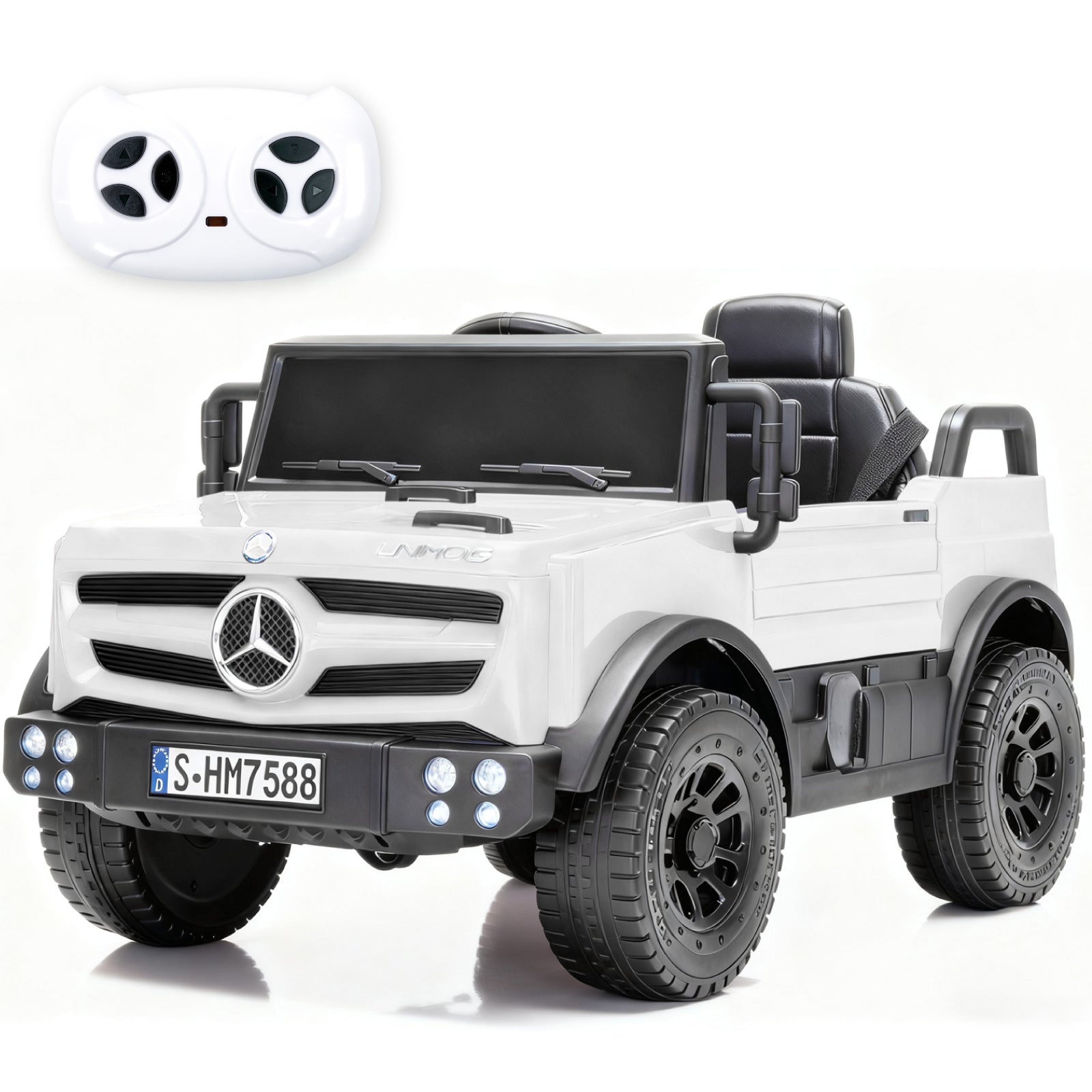12V Mercedes-Benz Unimog Ride-On Car for Kids | Remote Control, LED Lights, Music Player & Safety Belt – Perfect Gift for Ages 3–4